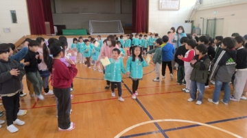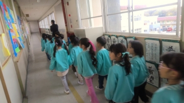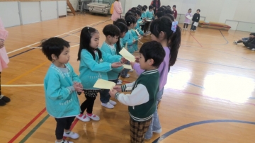 新1年生の一人一人がプレゼントをもらい、元気なあいさつで大谷台保育園へもどりました。今回のような交流が来年度以降も増えるように計画をしていきたいです。