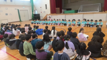 来年度本校へ入学する大谷台保育園の年長児童23名が体育館に集まりました。
