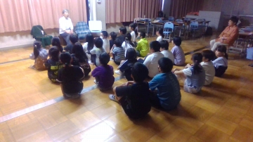 「よもや・・・」「あわれな」「そまつに」など、難しい言葉も出てきましたが、子どもたちは語り聞かせてくれる方の話に引き込まれていきました。