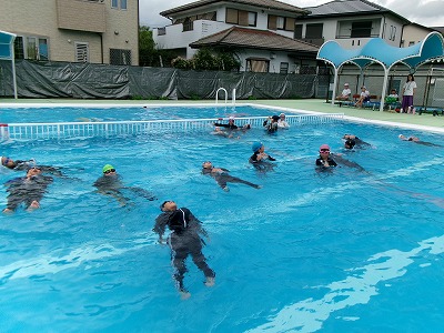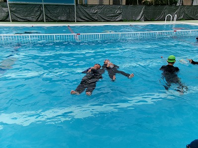 着衣水泳の目的は、「服を着て入水した時の泳ぎにくさを体験する」