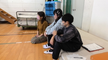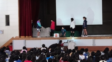 火起こし活動や部屋での様子の劇は、体育館全体が笑いでいっぱいになりました。