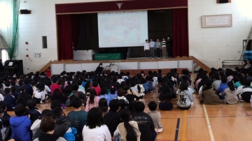 5年生の発表は、11月20日(木)、21日(金)に出かけた自然教室の活動報告が中心でした。報告後には歌も紹介されました。