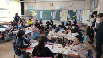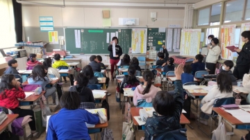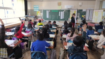 3年1組教室で公開授業 国語「カミツキガメは悪者か」(説明文)がありました。
