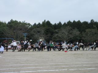 保護者・地域の方々の綱引きは、会長チーム、副会長チームに分かれて、迫力ある戦いでした。子ども達も、お家の方が頑張ってくれている姿に大喜びで応援していました。ご参加いただいたPTA・地域の方々ありがとうございました。