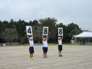 子ども達お待ちかねの得点発表です。今年度も赤チームが勝ちました!どちらのチームも全力を尽くしてよく頑張りました。