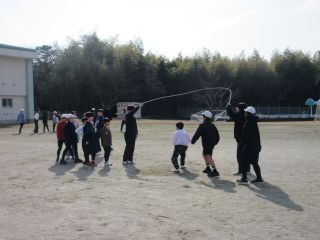 今日の20分休みは、3学期初めてのなかよしタイムでした。今、クラスでは「なわとびタイム」を頑張っていますが、このなかよしタイムでは、たてわり班で大縄跳びをしました。6年生が、「上手!」「あと少し!」の声かけや、縄にひっかかってしまった子には「いいよ!、大丈夫!」と励ましながら、低学年の子が跳びやすいように縄を回していました。