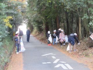 堂ケ山方面、和無田方面に分かれて、道端のゴミを拾いました。「あそこにゴミがあるんだけど・・・」と遠くに見えるゴミも見つけて拾おうとしている子もいました。「アルミ缶が落ちてる。」「タバコのゴミがいっぱい。」など言いながら、意欲的にゴミ拾い活動に取り組んでいました。