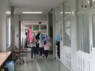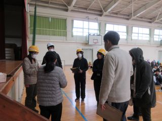 今回は、行方不明児童がいる場合を想定した避難訓練も兼ね、教職員も防災マニュアルに基づき、児童の捜索・事後対応など確認をしました。寒い体育館ですが、行方不明児童捜索の間も、子ども達は静かに待つことができていました。