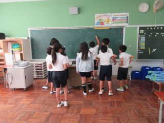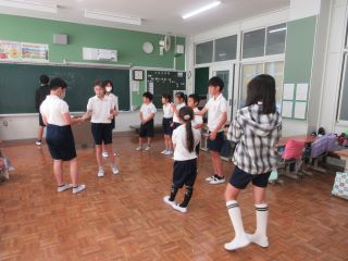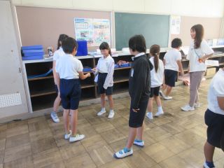 今日の20分休みに2学期初めての「なかよしタイム」がありました。6年生が考えた遊びを、たてわり班で楽しみました。ゲーム前には、高学年が低学年に内容をわかりやすく教えたり、準備を助けたりするステキな姿が見られました。10分という短い時間でしたが、たくさんの笑顔が見られた時間となりました。