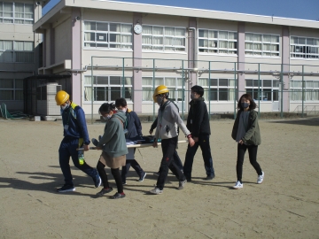 1月15日、地震を想定した避難訓練を行いました。今回は、事前に伝えず行った訓練であったので、少し戸惑いがあり放送が聞けていない状況がありました。実際にはそういうこともあり得ることです。さらに、避難できずに要救助者1名が出たということで、職員が捜索及びおよび救助するという訓練も行いました。災害を想定した訓練は、し過ぎるということはないと思います。