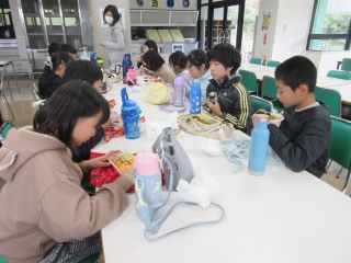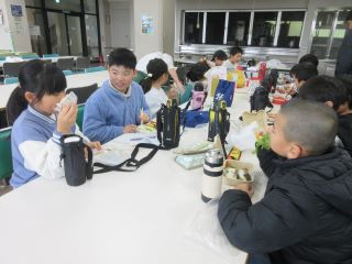 お待ちかねのお弁当の時間です。お家の方の愛情がこもったお弁当、とてもおいしそうです。ご準備ありがとうございました。