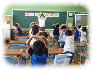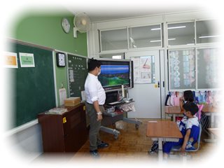 6月24日水曜日,1年A組に初めて英語の先生がみえました。1年生の学習は,国語や算数が多いので,「英語?」「できるかな?」と心配していた子もいましたが,始まればみんなとても楽しそうで,いつのまにか受け答えをしていました。