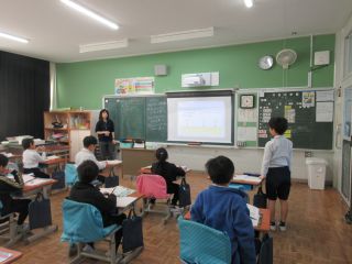 2年生では、算数科で「長さ」の学習の復習をしていました。教科書の問題を解き、早くできた人は、先生問題にもチャレンジしていました。発表をするときには、「cm」で表す答えと「mm」で表す答えについて言葉で説明することができていました。これからも、身近な物の長さを測る経験を通して、知識を定着していってほしいです。
