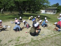 8日は、図工で「砂や土となかよし」の活動をしました。山を作ったり、どろ団子を作ったり、みんなとても楽しんでいました。