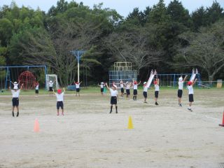今日の2限目は、運動場で1・2年生が運動会の表現の練習をしていました。表現では、隊形移動があり、踊りながら、「次の自分の場所はどこか」考えて動くことも大切です。1・2年生の子ども達は、周りの友達の様子をよく見たり、先生の話をよく聞いたりして移動していました。移動の時の「笑顔」もステキでした。