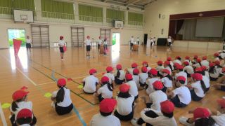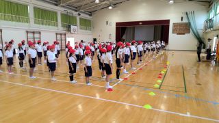 今日は、昨日からの降雨で運動場が使えず、1限目は、運動会の全体練習を体育館で行いました。開閉会式や得点発表、応援合戦の練習をしました。応援合戦の歌は、体育館中に響き渡り、「頑張るぞ!」の思いが伝わってきました。