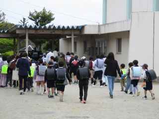 今日は、親子下校1回目ということで、お忙しい中、地区総括さんや地区委員さん、PTA役員さんなどたくさんの保護者の方々に来ていただきました。また、地区総括さんを中心に登下校の見守り当番等を決め、子どもたちの安全に気を配っていただいていることと思います。本当にありがとうございます。今後ともご協力をよろしくお願いいたします。