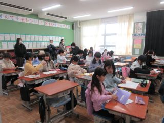 今日の1・2限目は、今年度最後の授業参観でした。子ども達は、お家の方に来ていただくうれしさと緊張感があったと思いますが、先生や友達の話をよく聞き、自分の意見や思いを話し、課題に頑張って取り組む姿が見られました。