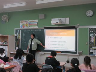 4年生では、社会科で「自然災害から人びとを守る活動」という学習をしています。今日の4限目に市教委の坂口先生にご来校いただき、能登半島地震後に避難所の支援に行かれた時の貴重な話を聞かせていただきました。様々な規模の避難所の様子やどのような支援をされたのかを、わかりやすく丁寧に話していただき、子ども達も真剣に聞いていました。先生の「避難所の生活は学校生活と一緒。学校生活の全部が防災訓練で、万が一の時に役立つ。」という話が心に残りました。何か問題があった時に、ゴール(目標)を決め、話し合って解決に結びつけていくことの大切さを改めて感じることができました。