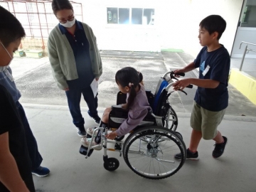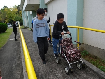 青山里会、小山田老健の方々に来校いただき、高齢者体験講座を行いました。