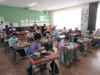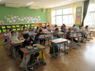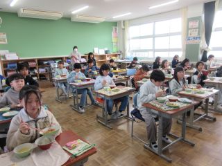 今日は、今年度最後の給食でした。どのクラスも美味しそうに給食を味わって食べていました。「おかわりほしい人!」の声に手を挙げる子も多かったです。小山田小は残菜も少なく、好き嫌いなく給食を食べる子が多いので、素晴らしいです。作ってくださっている調理員さんへの感謝の気持ちを込めて、これからも「自分の体のもと」になる給食をしっかり食べてほしいです。