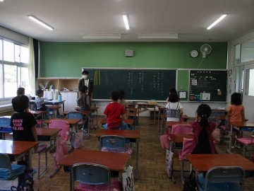 本日は、鹿間、小山、堂ケ山、六名、和無田地区の分散登校でした。子どもたちは、昨日と同様、少し疲れ気味ですが友だちと会えることを喜んでいました。友だちと会えたことがうれしすぎて、少し近づきすぎな場面がありました。