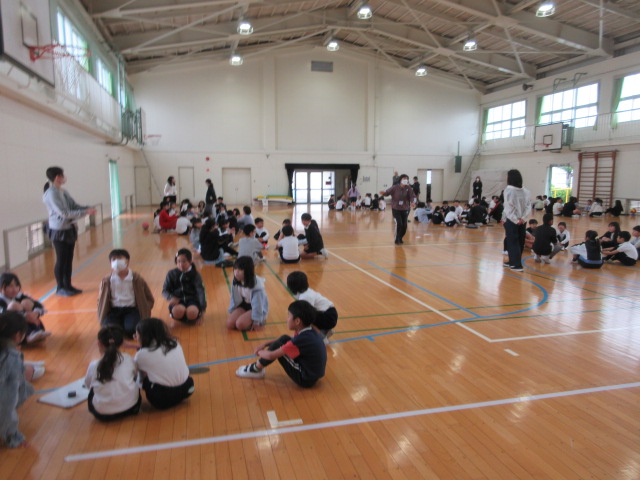 また、会のあとには第1回なかよしタイムで、1~6年生混合の縦割り班で集まり、自己紹介やハンカチ落としなどのゲームをして交流を深めました。