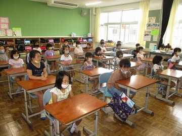 また、「みんなが仲良くすること」「掃除が好きな子になること」「おうちの人や先生の言うことが聞ける子になること」「自ら進んで、あいさつできる子になること」などのお話をしました。