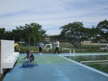 また、並行して、先生方数名は、本年度は水泳の授業は行いませんが、プールの掃除も行いました。ご苦労様でした。