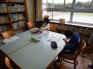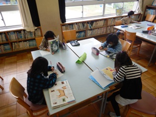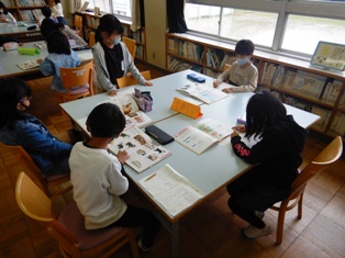 国語科では「ビーバーの大工事」という単元を学習しています。ビーバーの歯や足の水かき,尾の形などが詳しく書かれています。そこで子どもたちも自分が調べたい生き物のふしぎを図書室の本を使って調べました。