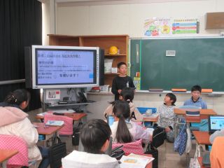 5年生の教室では、家庭科で取り組んだ「そうじ」についての発表をしていました。「小山田小ピカピカ大作戦」として、グループに分かれて、教室周りの掃除をしたことの発表です。自分達で掃除用具を工夫して作ったり、どんな洗剤でどのように擦るときれいになったかなどを画像でビフォー・アフターを示したりしながらとても上手に説明をしていました。