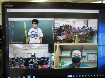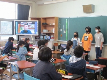 10月9日、5年生はZoomを活用したオンライン授業を行いました。内容は、5年生が行おうとしている「ニコニコプロジェクト」の実施に向けて、Zoomにより5年生の教室と校長室をつなぎ、子どもたちが校長にインタビューするというオンライン授業です。声量やカメラの位置などに気をつけながら実施しました。今後、学校と家庭をつないだり、本校と他校をつないだりしていく予定です。