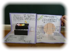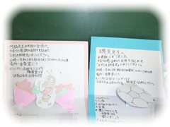 しかし,それぞれが工夫して作った招待状です。手作りのランチョンマット,ミニレターを添えて,お渡ししにいこうということになりました。