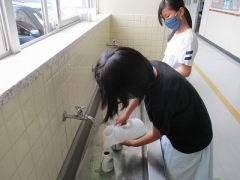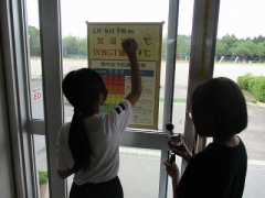 健康清掃委員会では、手洗い石鹸・トイレットペーパーの補充やトイレのスリッパ・牛乳バックの整頓を行います。また、この時期は熱中症予防にWBGT値を測定しています。みんなが気持ちよく健康に過ごせるように、がんばっていきましょうね。