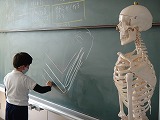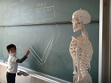 理科では「人の体のつくりと運動」の単元の学習をしています。うでを曲げたときの骨や、筋肉の動きについて予想し、発表しました。うでの骨はどうなっているのか、筋肉はどう動くのか、自分のうでを触りながら考えていました。