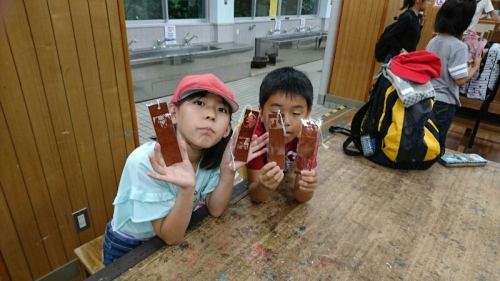 1日目午前は、雨天のため工作室で伊勢型紙の栞を制作しました。みんな細かい作業に苦労しながらも、素敵な栞を完成させました。昼食は、食堂でお家の方の手作りのお弁当をいただきました。これから、班で協力して野外炊事のカレーライスを作ります。