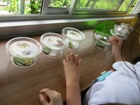 そして、キャベツの葉っぱからもんしろちょうの卵を見つけ、観察も始めました。