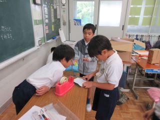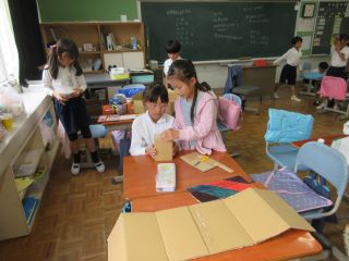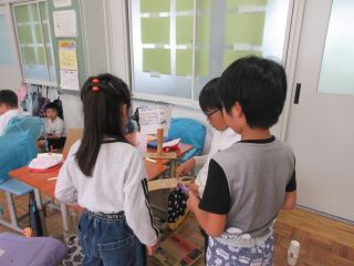 生活科の学習で、2年生がおもちゃランドを作る準備をしていました。「1年生の子たちに遊んでもらうの!」とのことで、おもちゃを工夫して作っていました。自分でもやって確かめ、うまくできるか試している子もいました。きっと招待した1年生も喜んでくれることでしょう。