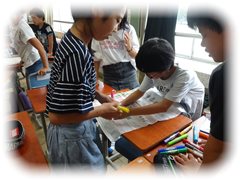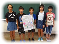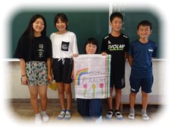小山田小5・6年生は,「土嚢プロジェクト」という取り組みに参加しました。台風等の被害を受けた地域の人たちは,茶色い土砂や茶色い袋の山は見ているだけでも気が滅入るそうです。片付ける人にも、近くを歩く子どもたちにも、「いっしょに作業はできないけど、遠くからでも応援しているよ」という気持ちが伝えられたら、とメッセージや明るい絵を土嚢袋に描きました。「明るい花の絵はどうかな」「花言葉が『幸せ』の花がいいな」「チューリップそうやで」……子どもたちなりに相手の気持ちを考えて話しながら描いていました。ご家庭でも今一度、防災についてお話し合いください。