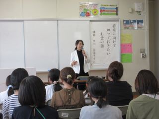 授業参観後には、校内の「子どもの未来を語る会」が行われ、(株)アスト代表取締役の生川奈美子様に「将来に向けて知っておきたいお金の話」の講演をしていただきました。金銭感覚の育成のために、家庭でどのように取り組むとよいのかなど話をしていただき、グループワークでは、教職員と保護者がお金について様々な話をする機会となりました。