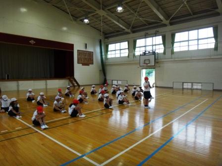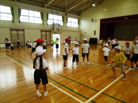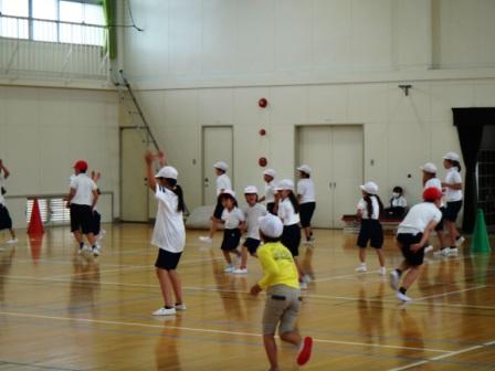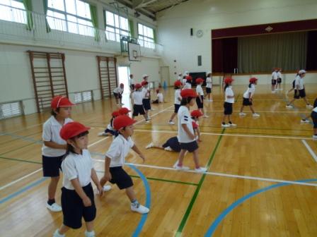 「だるまさんが転んだ」の様子です。1年生も「ピタッ」と止まっています。