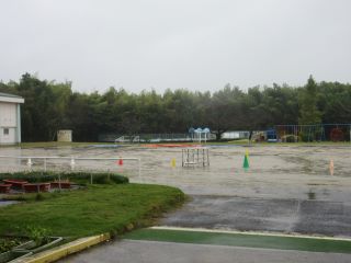 今日は雨の日になりました。一昨日からの雨で運動場にできた水たまりには、雨で広がらないように、教職員でシートを被せました。明日の晴天で、早く乾いていくことを願っています。