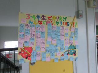 校内には、運動会に向けて、3・4年生の書いた意気込みが掲示されていました。「みんなで楽しくやり切ろう!」で、練習も頑張ってきています。きっとステキな表現を見せてくれることでしょう。
