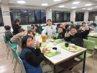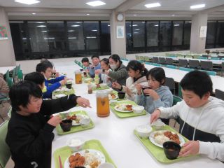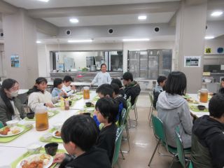 夕食の時間となりました。いつもより早めの時間だと思いますが、子ども達は、たくさん活動した後なので、食欲旺盛です。