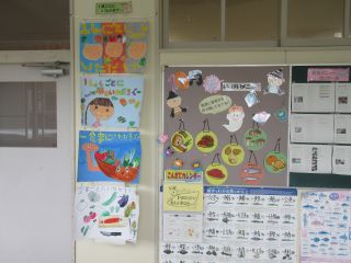 「一食ごとにいただきグー」のポスターも掲示してあります。どのポスターからも描いた人の気持ちが伝わってきます。