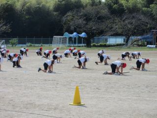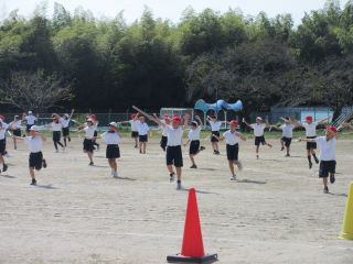 今日の2限目に、運動場で3・4年生が、運動会の練習(表現)をしていました。入場からの通し練習で、子ども達は、元気いっぱいに力強く踊っていました。かけ声も響き、意気込みが伝わってきました。