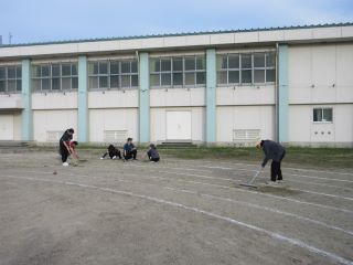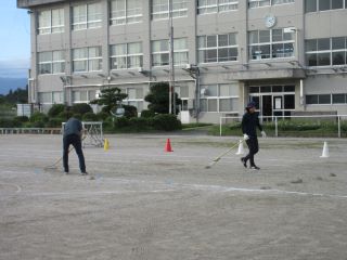 放課後は、教職員総出で、運動場の草取りなど、整地作業を行いました。