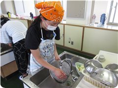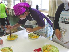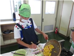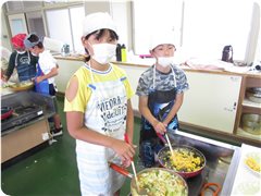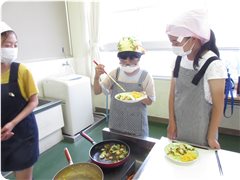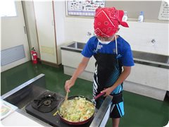 ドキドキ切っていた子も,炒める頃には動きにも余裕が出てきました。順序を考えて炒める子,その間に洗い物をする子,食べる人のことを考えて盛り付ける子…どの子もがんばりました。