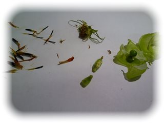 さわったことのないほうせんかの実をおそるおそる開けると、「うわっ、ぷちぷちって出てくる。ごまみたい!」とびっくり。マリーゴールドは「このくさったみたいな、枯れたみたいなやつかな?」と今までなら捨ててしまいそうな花に、爪を立てて横に開くと、びっしりときれいに縦に並ぶたねたちがいっぱいで,大騒ぎでした。目立つ花に目が行きがちですが,植物は命をつなごうと一生懸命に生きていることを、感じたひとときでした。