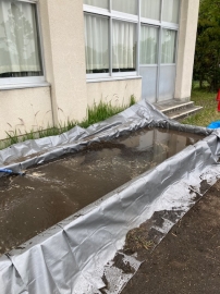 子どもたちといっしょに行った時間では終わらなかったので,放課後に他の学年の先生方に手伝ってもらい,シートを張替え,土を入れる作業を行いました。今日から水を入れ,学習田の完成です。ゴールデンウィークを明けてから,田植えを行う予定です!!